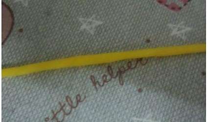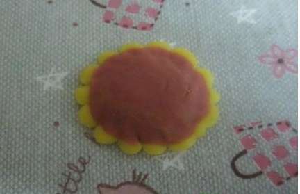 2准备一快黄色橡皮泥搓成条状,分成十来份,压扁,作为向日葵的黄色花叶。