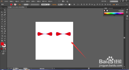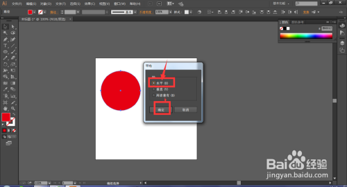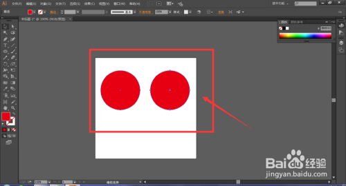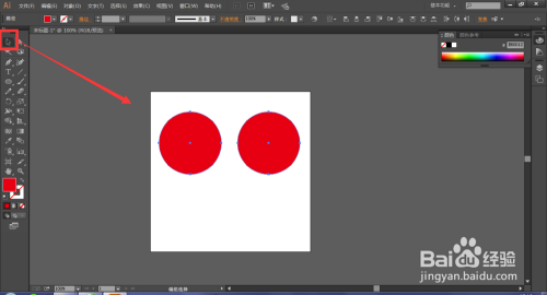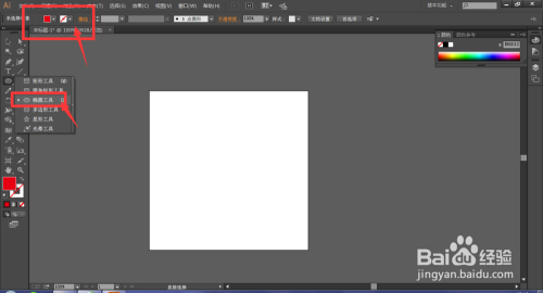 选择工具栏中的椭圆工具,在属性栏中设置填充为红色,描边颜色关闭