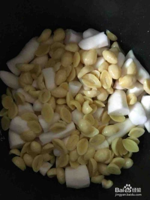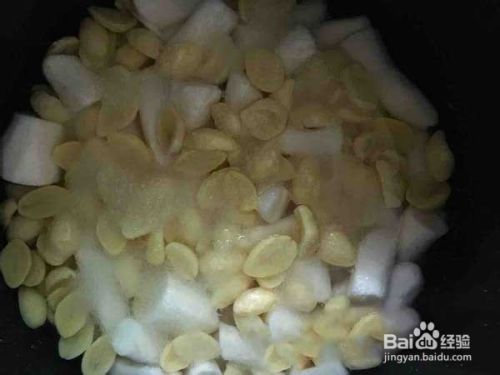 姜薯切大块放锅底,再把白果均匀撒上面。