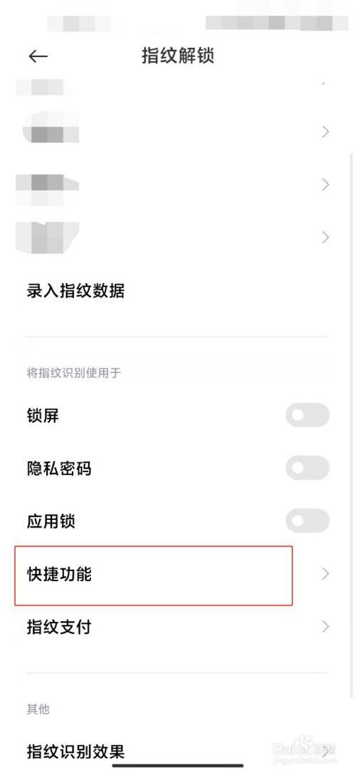 点击<指纹快捷功能>,打开开关,这样就完成了。