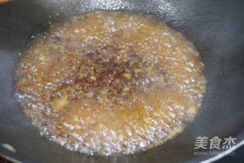 8炒锅内放少许油,放入葱末姜末爆香,接着放入调味汁,炒到芡汁粘稠发亮即可。