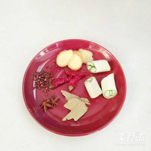 2调料:姜,葱,花椒粒,辣椒,八角,香叶。