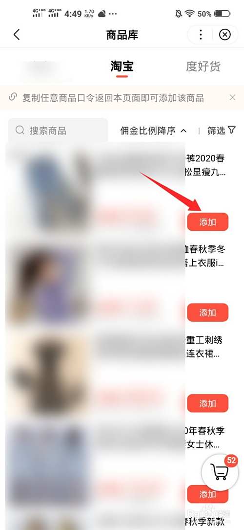 点击添加商品的选项。