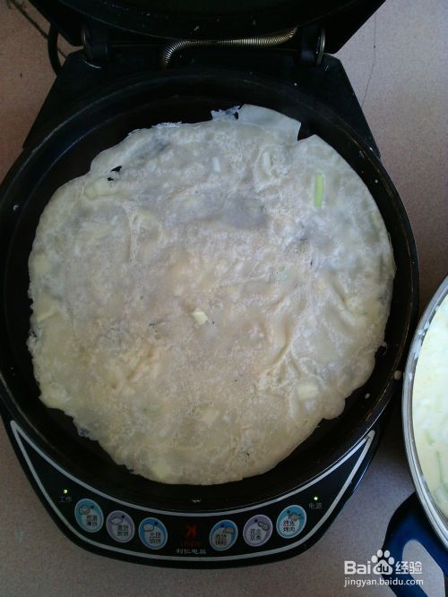 电饼铛刷油、加热,用小勺舀面糊到已经加热好的电饼铛上,用木铲摊匀。摊饼变得透明,用铲子可以拖动时,摊饼就熟了。
