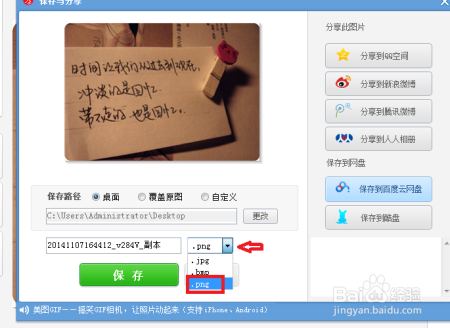 选择完后,点击“保存”按钮进行保存。完成以上设置后,即可用美图秀秀进行图片的格式转换。