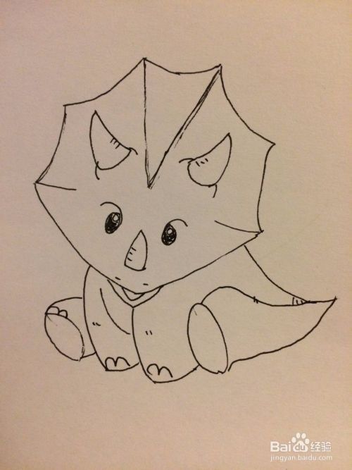 然后画出后退和尾巴。最后画出脚趾。这样三角龙就画好了。