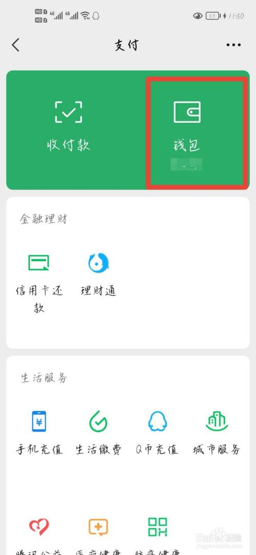 在支付界面,找到钱包功能选项,点击进入。