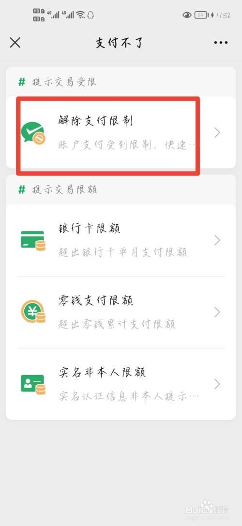 进入支付不了界面,点击解除支付限制,根据页面提示进行操作即可解决限制。