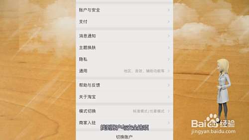在淘宝的设置界面中,找到账户与安全选项,点击它进入新界面。