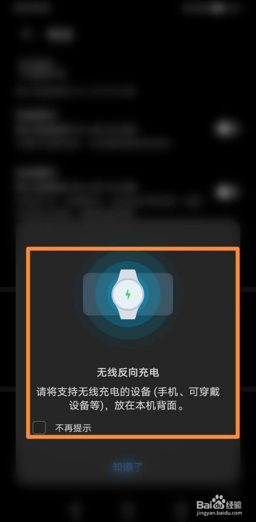 step4,点击打开后,将无线充电的设备,放在手机背面即可,如下图所示: