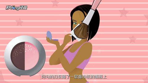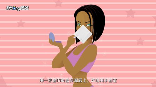 5散粉定妆更持久,涂好口红后,用一张面巾纸盖在嘴唇上用手固定。