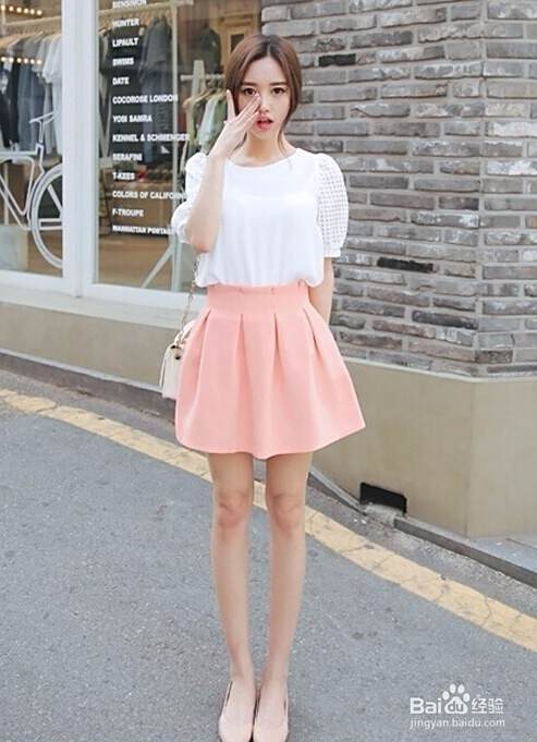 雪纺衫是春夏季经常穿的服饰,这款白色雪纺衫特别百搭,搭配一条粉色百褶短裙,甜美又可爱。
