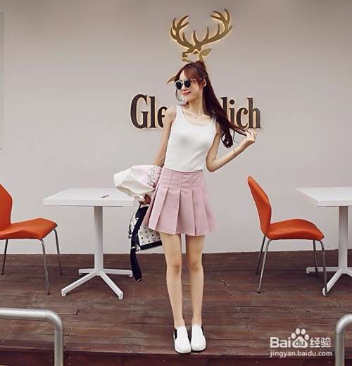 白色是很洋气的颜色,这款白色针织背心简单又凉快,搭配一条粉色百褶短裙,少女心慢慢。