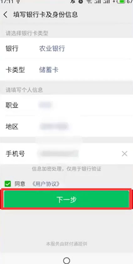 输入职业和地区手机号,点击“下一步”。