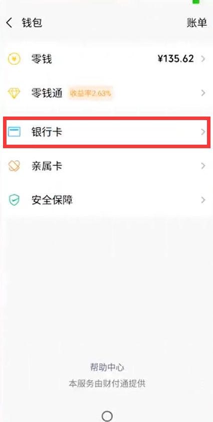 点击“银行卡”选项。
