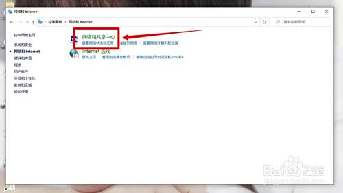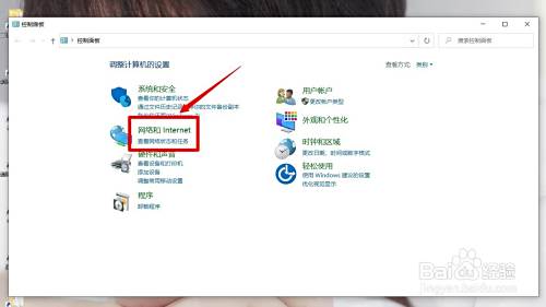 打开“控制面板”,找到“网络与Internet”选项,鼠标双击左键进入。在打开的面板中找到“网络与共享中心”,点击进入。
