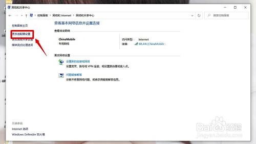 在界面左上角找到“更改适配器设置”选项,点击进入”网络连接“界面。