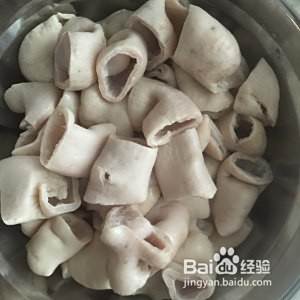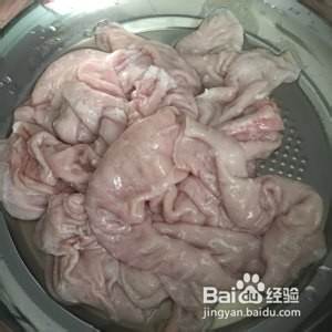 刮掉大肠里面的猪油,要刮干净不然会有味道。
