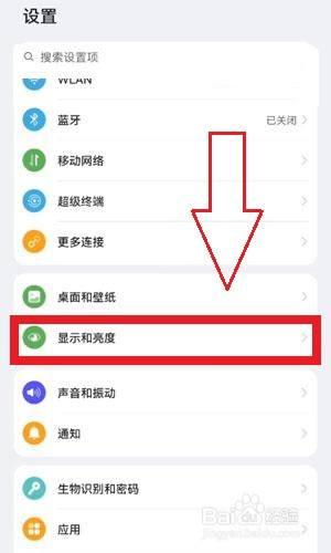 第二步,上下滑动找到【显示和亮度】;