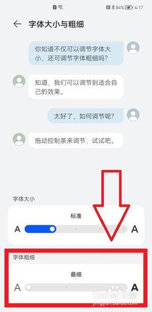 第五步,点击将其滑动至右侧,字体将更粗,滑动至左侧将更细。