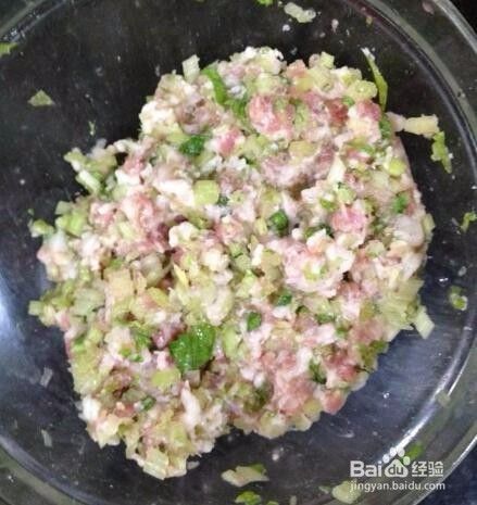 因芹菜含水较多,且放有盐巴及鸡蛋,需放置一会,待多余的水溢出后,就可以包饺子了。