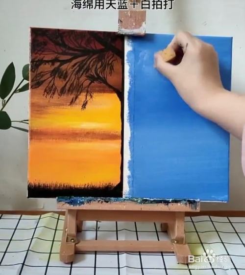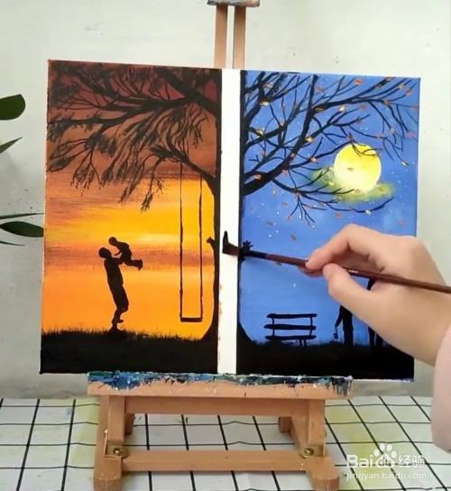 上半部分,我们可以用海绵蘸取一点点白色颜料给她不进行过度运转,接着我们用相同的画树枝部分完成它。
