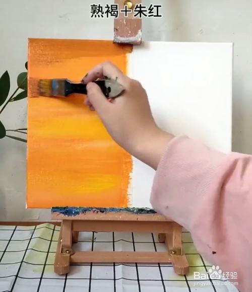 把这一些颜料,我们用大刷子,给他进行涂抹开来,只需要涂抹在一半的位置上。