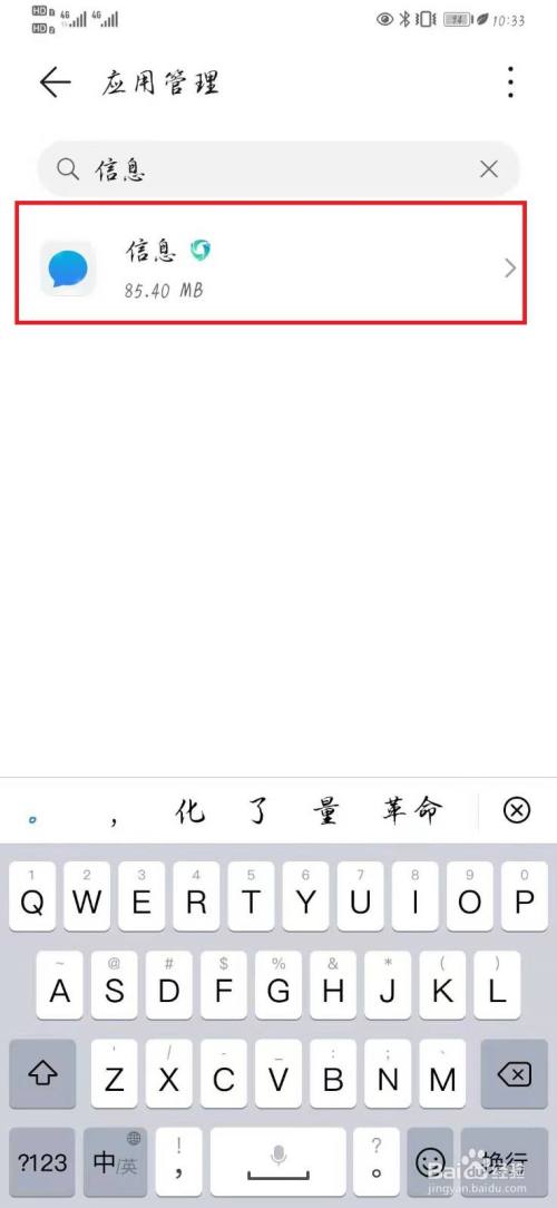在应用管理页面,搜索并选择【信息】应用,如下图所示。