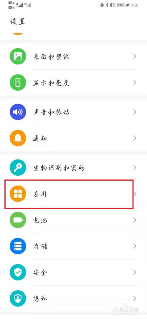 在手机设置页面,打开【应用】,如下图所示。