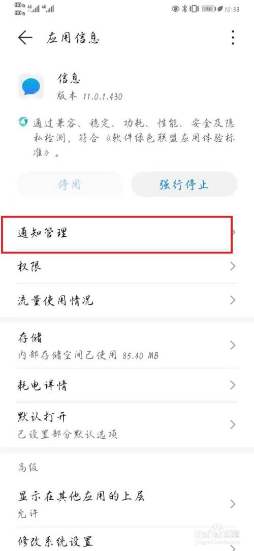 进入信息应用管理页面,打开【通知管理】选项,如下图所示。