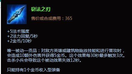 出门装窃法之刃+血瓶。小法师出窃法之刃可以很好的配合被动打钱,毕竟小法师经常用技能消耗对方。饰品推荐黄色饰品。后期换成红色。