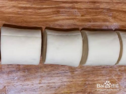 取一份小面团,搓成长条擀成牛舌状,对折一次再次卷起来,轻轻按压擀成饼,全部处理好,松弛十分钟,备用。