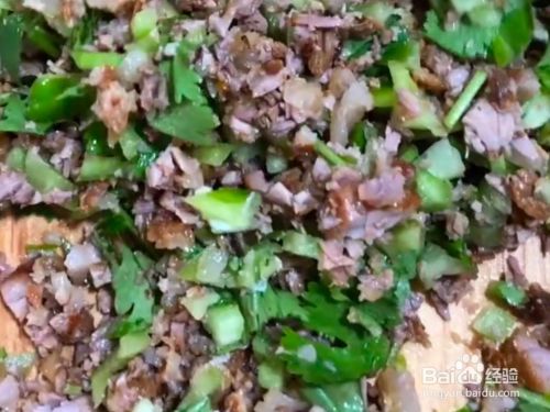 再把煮熟的五花肉,捞出和上适量尖椒剁成碎末。