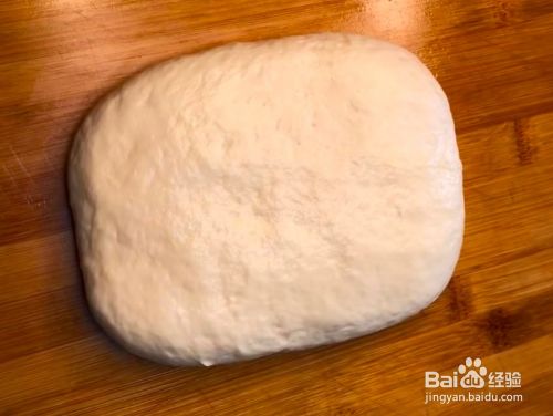 醒发好的面团移到案板上反复搓揉排气,再擀成一个大薄饼。