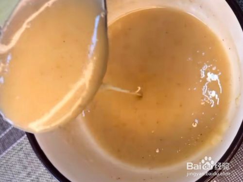 再取一个空碗,加上三勺面粉,一点十三香和少许精盐,搅拌均匀,淋上热油,调成油酥,备用。