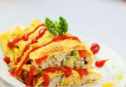 14.迅速蛋皮固定,盛入盘中,淋上蕃茄酱即可。