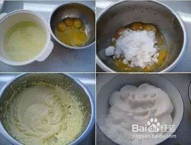 1.蛋黄、蛋清分开,放入两个容器中。