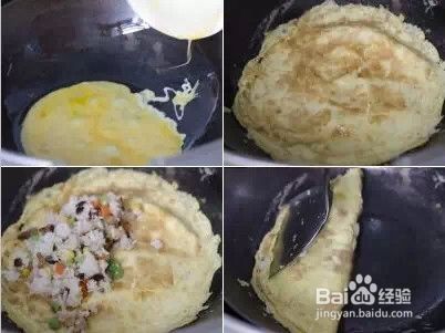13.将炒饭放入蛋皮中间