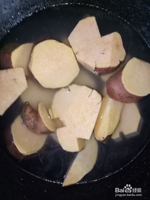 把切好的地瓜块,放到锅内,加入适量的水,大火烧开,改用小火。用筷子很容易插透,捞出。