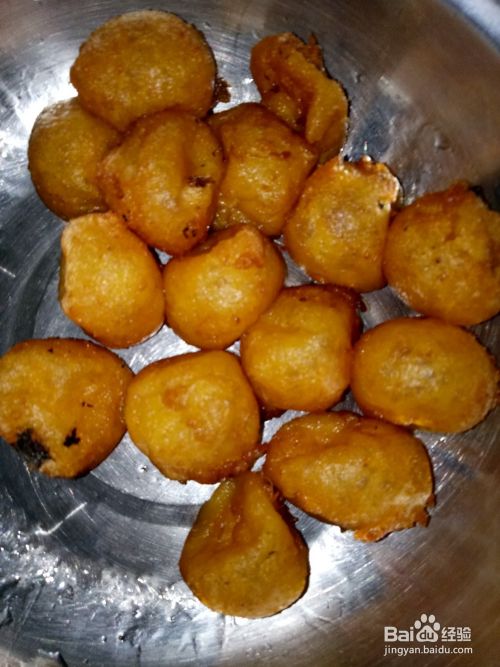 地瓜丸子比较软,用勺子小心的搅动,不要弄碎,待丸子漂起,捞出控油。地瓜丸子完成。