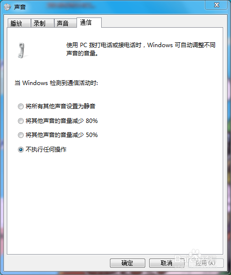 附:点击通信选项卡,选择“不执行任何操作”,可解决QQ语音、YY语音时其他声音减小的问题。
