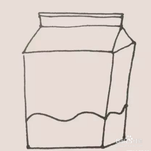 盒装牛奶的外形画好后,中间加上一条波浪线作装饰;