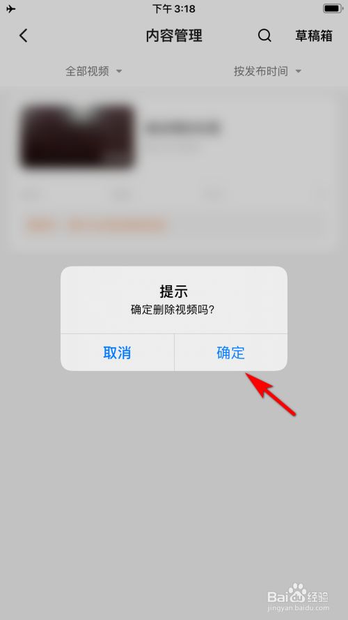 弹出提示框中点击确定的选项后,即可删除自己发布的视频。