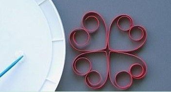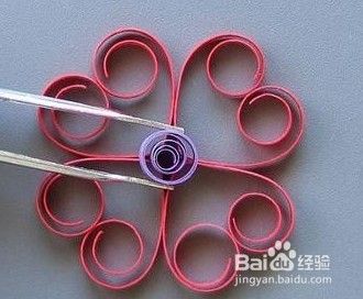 3、将4条小纸条都卷好之后摆放在一起就出现了一个花朵的样子。