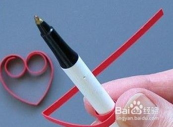 2、然后用圆珠笔将小纸条的一头卷起,另外一头也卷起,最终成一个心形。