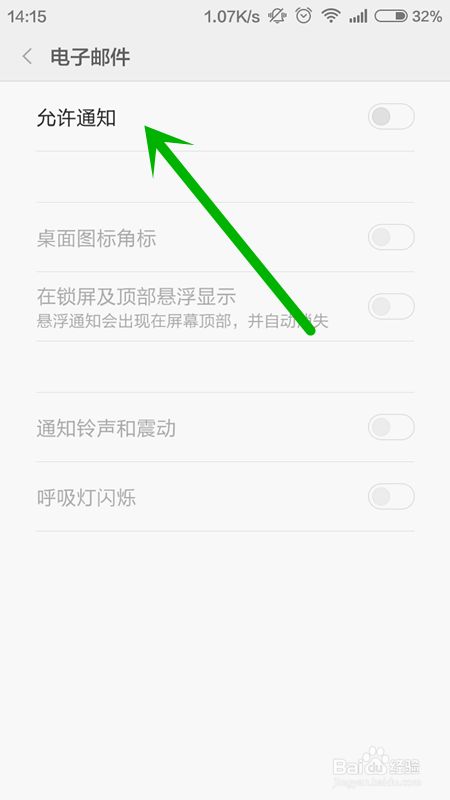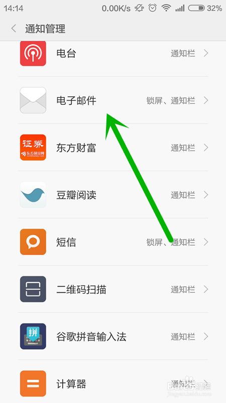 打开后就会显示你所装的所有软件的推送信息的权限,找到你想屏蔽的,点击打开,(下面以电子邮件为例)