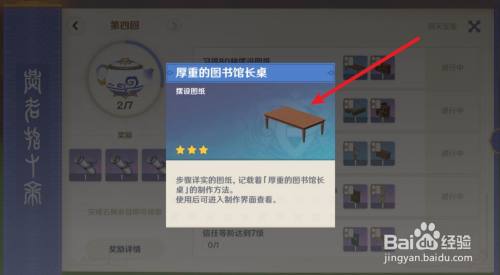 达到第四回合,需要学习80个图纸,才能获得厚重的图书馆长桌图纸。
