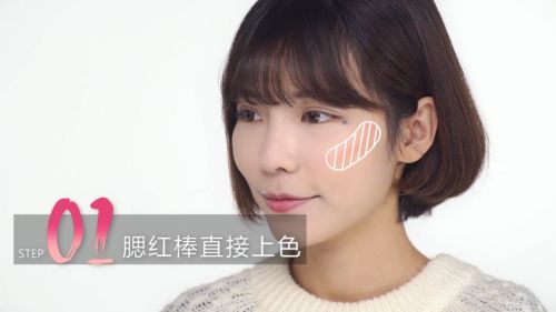 腮红棒直接上色。