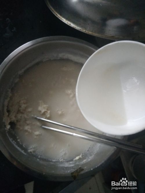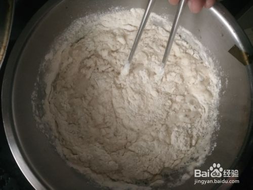 分别将一碗玉米面粉和一碗白面放入锅中进行搅拌后,接一碗清水