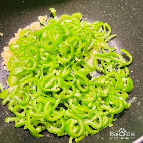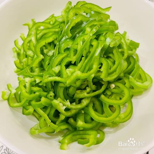 尖椒清水浸泡15分钟后 洗净去芯切丝儿 备用